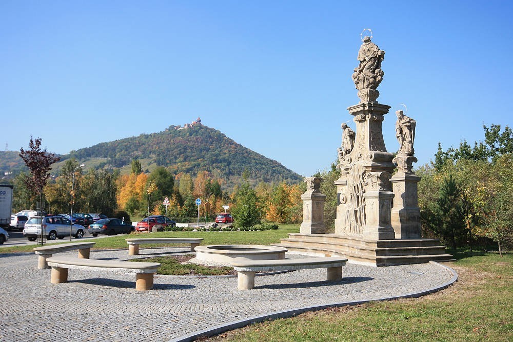 Sloup se sochou zemských patronů ve městě Most