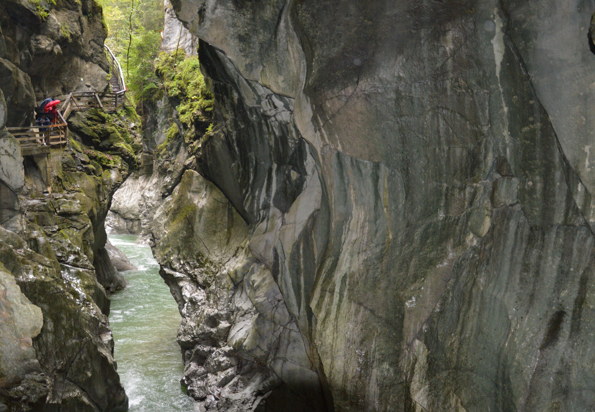 Soutěskou Lammerklamm se prochází po dobře udržovaném dřevěném chodníku ve svahu nad prudce tekoucí říčky. Naskýtají se zde pěkné výhledy na říčku i strmé okolní svahy. Přímo tajemně působí krátký úsek říčky, která protéká zdánlivě dírou ve skále. Tomuto místu se říká Tmavá soutěska (Die Dunkle Klamm) a končí tam dřevěný chodník. Procházková cesta na druhou stranu vede ještě k lávce přes říčku, pravděpodobně k druhému vchodu. Protože nám pršelo a měli jsme již málo času, tak přes lávku jsme již nešli a vrátili se na parkoviště k autu. Cestu soutěskou zpestřuje několik postav lesních skřítků. Na jednom místě chodníku je na stěně vyznačena úroveň vody při mimořádných deštích. Přestože je cesta dost vysoko nad říčkou, značky úrovně maximální vody jsou ještě o dost výš. Neumím si představit, kolik vody korytem mohlo protékat. Zřejmě je v říčce občas dost vody, protože se po ní v minulosti plavilo dřevo do solných dolů v Halleinu.