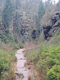 Nedaleko Postelwitz - velmi příjemá cesta soutěskou Schießgrund po zelené kulaté značce, v blízkosti možné občerstvení v hospodě Schrammsteinbaude