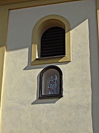 Výš v kopci se nad zákrutem silnice vypíná hranolová věž zvonice s přízemní kaplí. Pod ozvučnými okny v patře je umístěna zasklená nika s figurkou sv.Floriána. Věž je kryta plechovou stanovou střechou, z níž vystupuje polygonální vížka zakončená polygnální špicí, nahoře s pozlaceným křížkem. (Dobu vzniku zvonice se mi zjistit nepodařilo.)