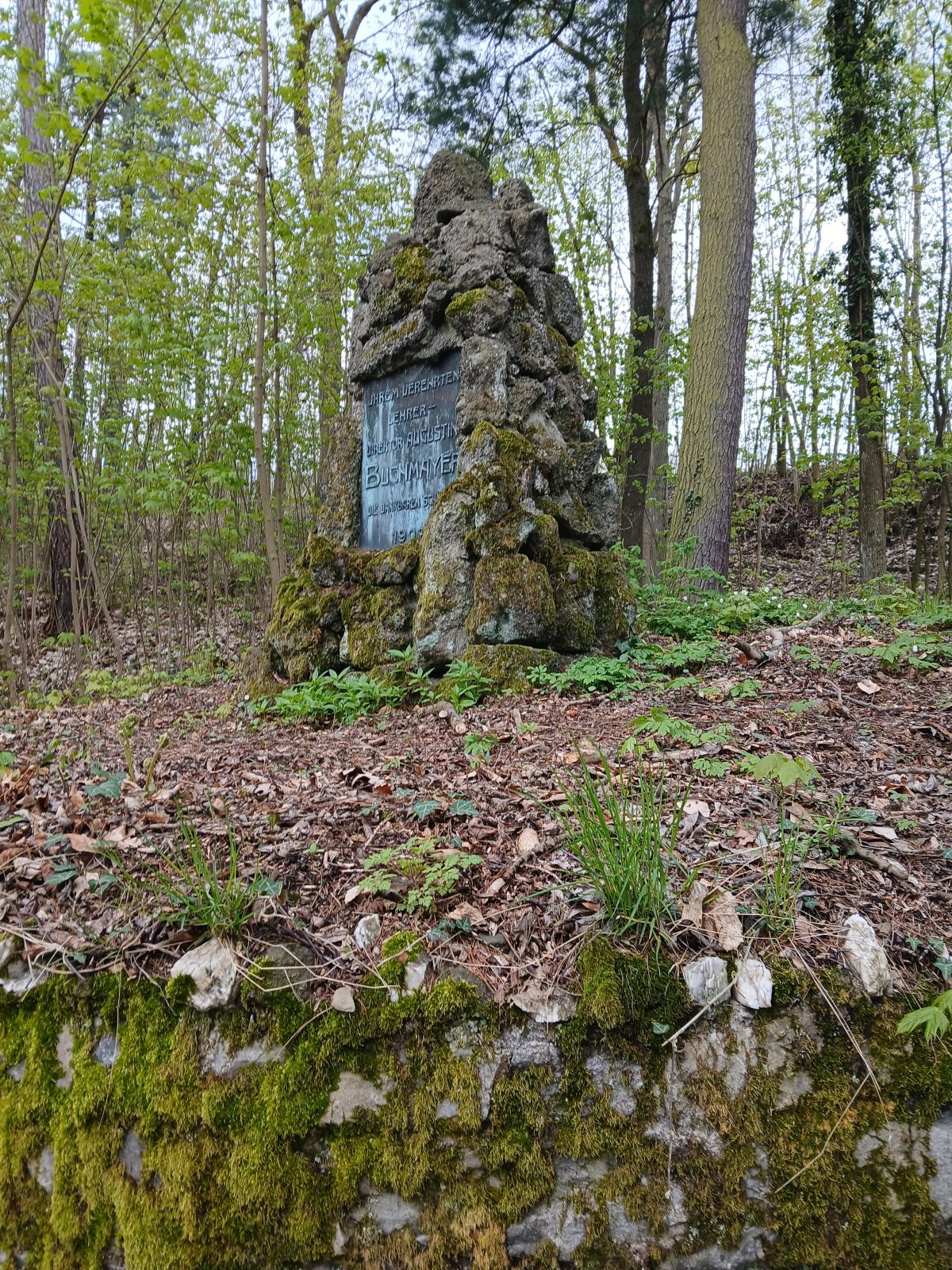 Pomníček je nenápadný, schovaný v lese, neďaleko od cesty. Nedalo nám to a išli sme si ho odfotiť a tak sme zistili k pamiatke koho bol pamätníček postavený. Kamene, z ktorých je postavený pomník sú už obrastené machom, ale nápis na doske je dobre viditeľný, aj keď pomníček tu stojí už cez sto rokov.