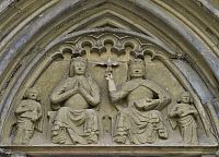 Tento reliéf je vsazen do tympanonu portálu a je považován nejen za jednu z nejkrásnějších výtvarných částí chrámu, ale také za jednu z nejstarších plastik na Slovensku. Nad tympanonem pak můžeme vidět gotické lomené oblouky.