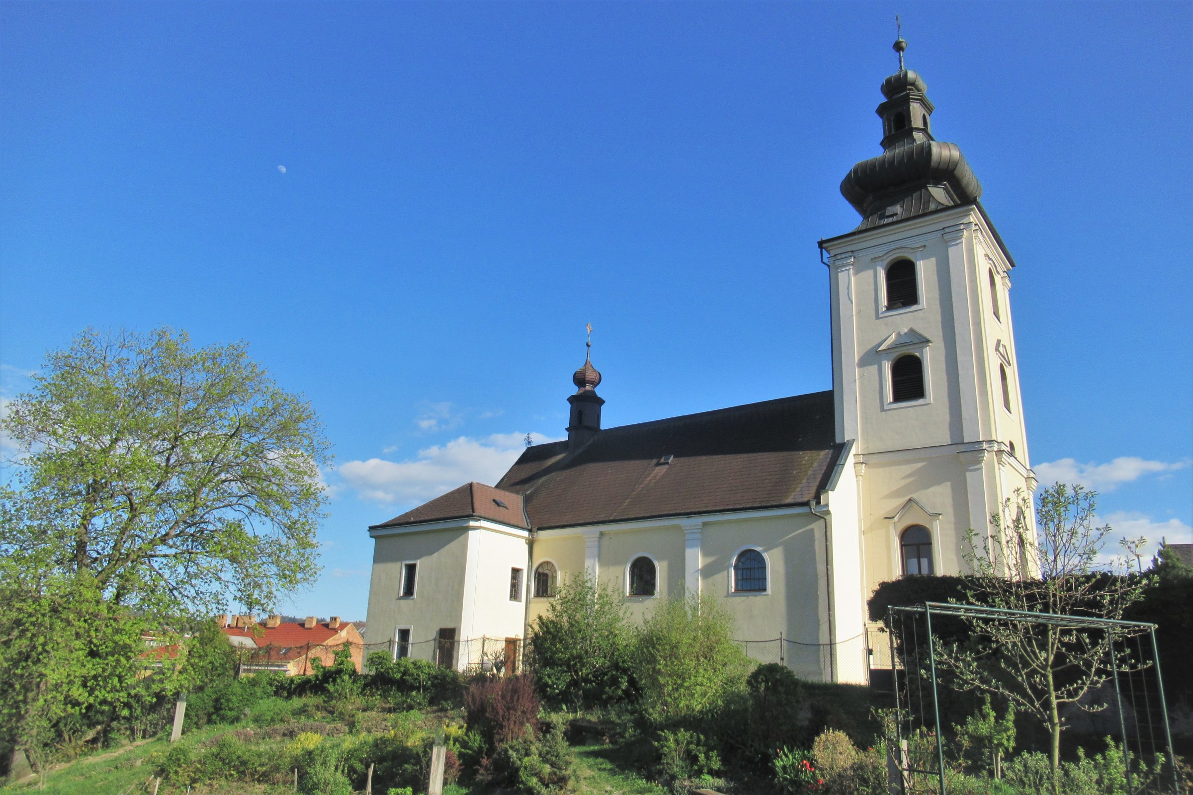 První objekt zde byl postaven někdy koncem 12. století, neboť se uvádí, že v době tatarských nájezdů roku 1241 byl vážně poškozen. Z gotického období se zachovala portálová část. Barokní podobu dostal v letech 1672-91 a v letech 1707-10 byl opět renovován. V současnosti interiéru dominuje jediný kamenný oltář a kříž, dílo J. V. Myslbeka, který kostelu dlouhodobě zapůjčila Národní galerie v Praze. V kostele se nachází hrobka rodu Rožmitálů (jako první zde byl pochován v roce 1667 Kašpar Lev z Rožmitálu). Stávající věž pochází z přestavby v letech 1707-10. Ta je dnes po vnitřních úpravách v turistické sezóně přístupná veřejnosti jako vyhlídkové místo. Více zde.