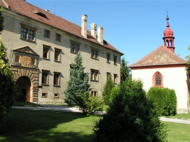 Zámek se skládá z jednopatrové vstupní budovy s obnovenými zbytky renesančních sgrafit a renesančním portálem a rekonstruované čtyřkřídlé hlavní budovy. Na západní straně areálu jsou novější hospodářské objekty, na severní straně jsou sklepy. Součástí komplexu je gotický Kostel sv. Jana Křtitele na předzámčí. Ve svatyni je gotický svorník s erbem a renesanční oltář z roku 1582.