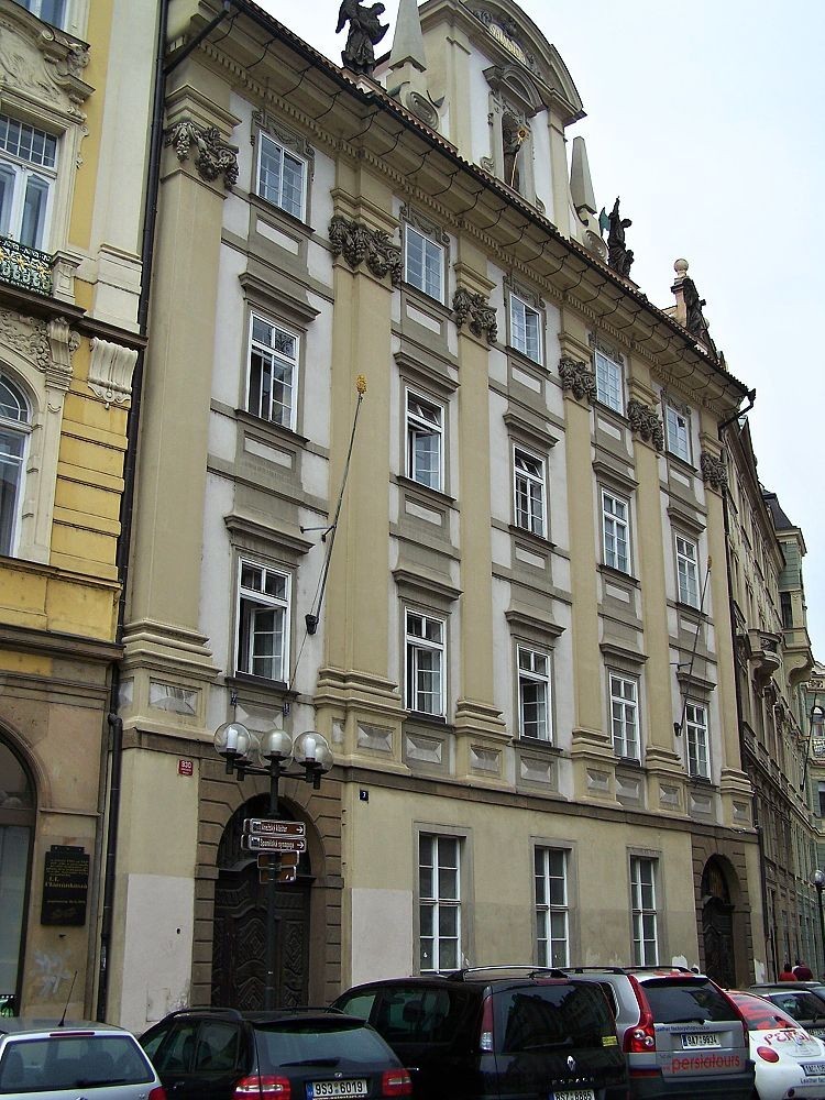 Pamětní deska poblíž vchodu připomíná fakt, že tu v letech 1910 - 1911 přednášel Albert Einstein. V tomto domě se nacházel salon Berty Fantové a scházeli se tu německy píšící spisovatelé či osobnosti, jak Franz Kafka, Franz Werfel, Max Brod nebo Egon Ervin Kisch.