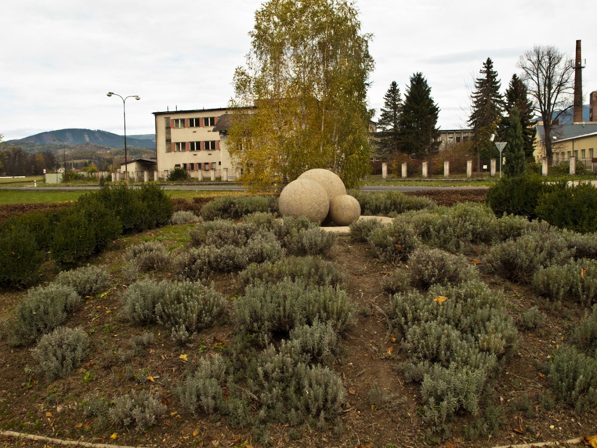 Aby parčík získal na atraktivnosti, dostal i zajímavou ozdobu, která u místních sklidila nebývalou oblibu. Jedná se o vodotrysk, spíše vodní prvek. Je tvořen několika kamennými koulemi, po kterých v letních měsících stéká voda a s okolními stromy tvoří příjemnou oázu, zejména v letních parnech. Protože tvar fontány je poněkud nezvyklý, získal lidové označení upomínající na jednoho z bývalých starostů. Nejmenovaný představitel obce si díky svým zásluhám získal řadu příznivců, ale samozřejmě i odpůrců, jak už to tak chodí. Ovšem nutno je uznat, že mu Rapotín i celé Podesní může být celkem vděčné. Minimálně za tu železnici, která kolem jezdí. Po povodni v r. 1997 byla celá trať ze Šumperka do Koutů v dezolátním stavu, hrozilo i její zrušení (což by bylo pro místní i návštěvníky značnou ztrátou). Naštěstí představitelé obcí ve svazku údolí Desné se zasadili o opravu a zprovoznění trati. A právě zmíněný rapotínský vůdce měl tehdy ve spolku celkem důležitou úlohu. A protože jak je známo, každý dobrý skutek musí být po zásluze potrestán, lid si našel ty koule.