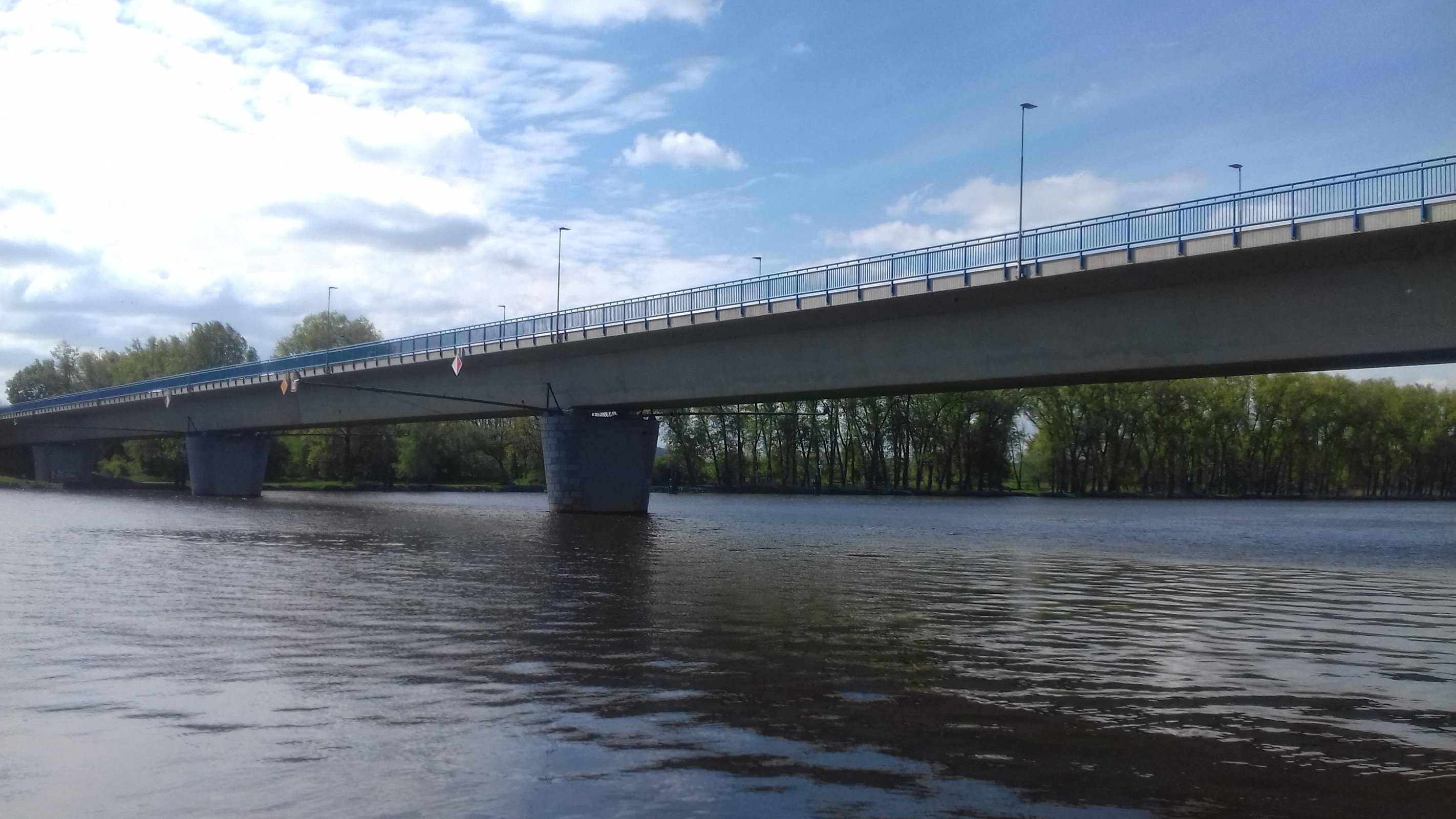 Most som si pozrel najskôr z okolia, z brehu Labe a nakoniec som si ho aj prešiel z mesta na Hněvicskú stranu a po železničnú stanicu, nie je to ďaleko, možno necelých 15 minút. Z mosta je krásny výhľad na rieku Labe, mesto Štětí, vidieť aj komíny Mondi. V dobe, keď som po meste špacíroval neprešiel do papieni žiadny nákladný vlak, ale neprišiel som skrátka, prešla jedna žltá diesel lokomotíva.