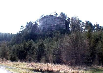 Pískovcový blok se zbytkem hrádku na vrcholu. Jden z dříve nepřístupných Hrádků ve vojenském prostoru Ralsko.