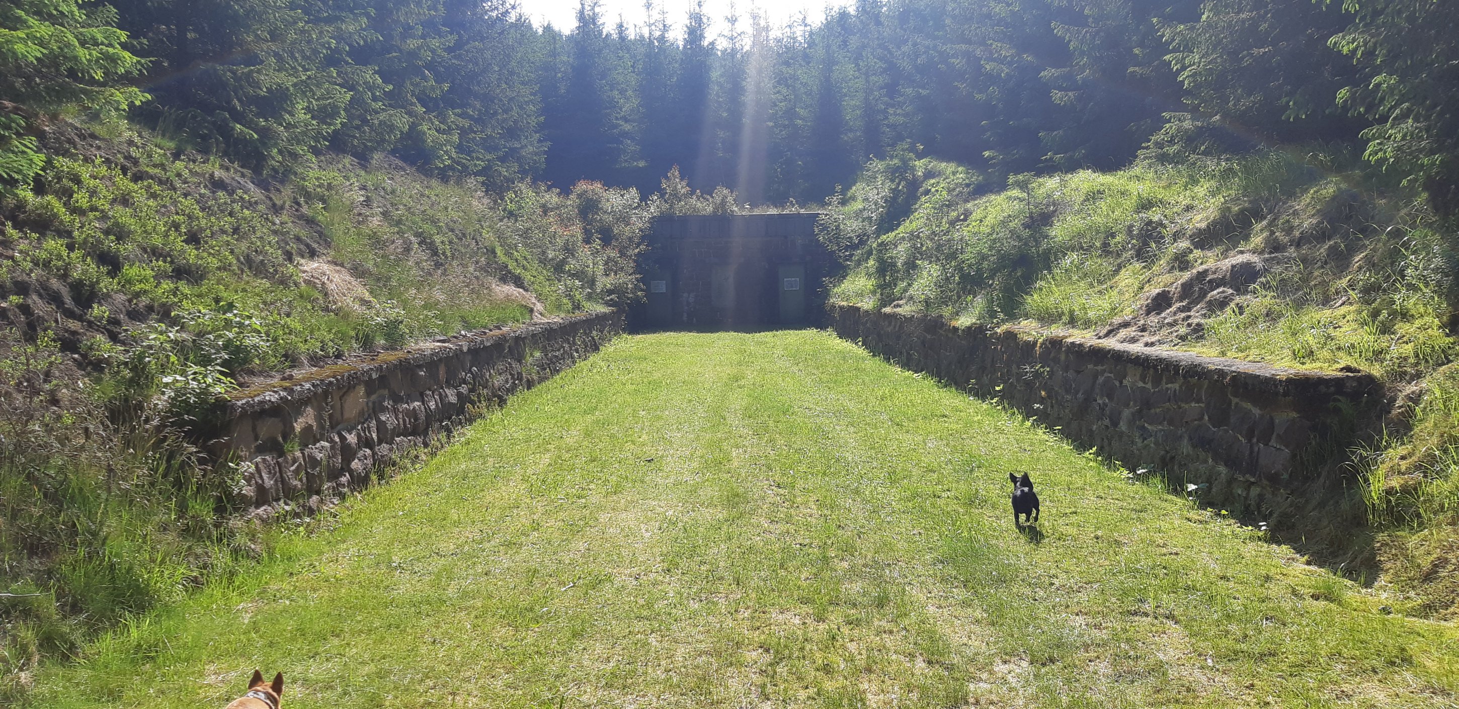 Vycházel jsem z nádraží na Moldavě. Hned za hraničním přechodem pokračuje modře značená trasa Kammweg. Ze silnice se schází na zrušenou železniční trať …