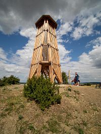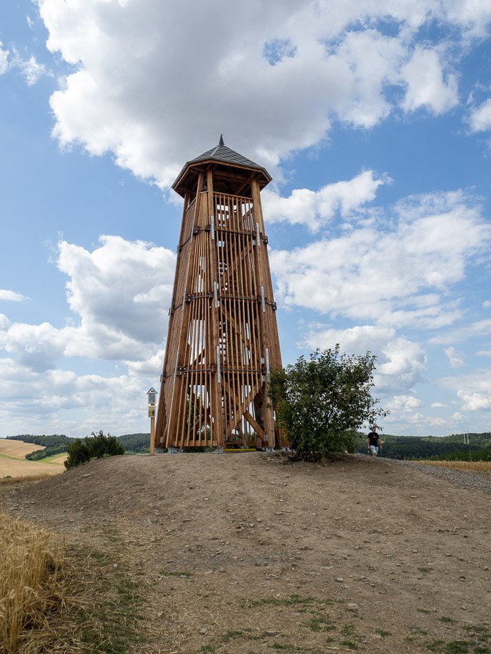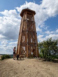 Na sympatickou stavbu stoupá trojice strmějších schodišť a vrcholová plošina je celkem malá, takž jak upozorňuje tabulka u vstupu, nevleze se na rozhlednu víc než 10 osob.