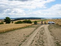 Kopec s rozhlednou je sice o něco menší než Velký Kosíř, ale výhled do krajiny je vcelku příjemný, nejsem sice detailní znalec místní krajiny, ale i za asistence „domorodců“ nebyl problém některé známé objekty rozpoznat, něco člověk odhadne i sám.