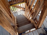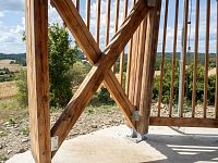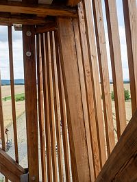 Na rozdíl od kosířské je dřevo použité na Strážné modřínové, které by mělo být odolnější a jak mi prozradil místní občan (patrně přímo stavitel rozhledny), hodlají svou rozhlednu udržovat lépe.