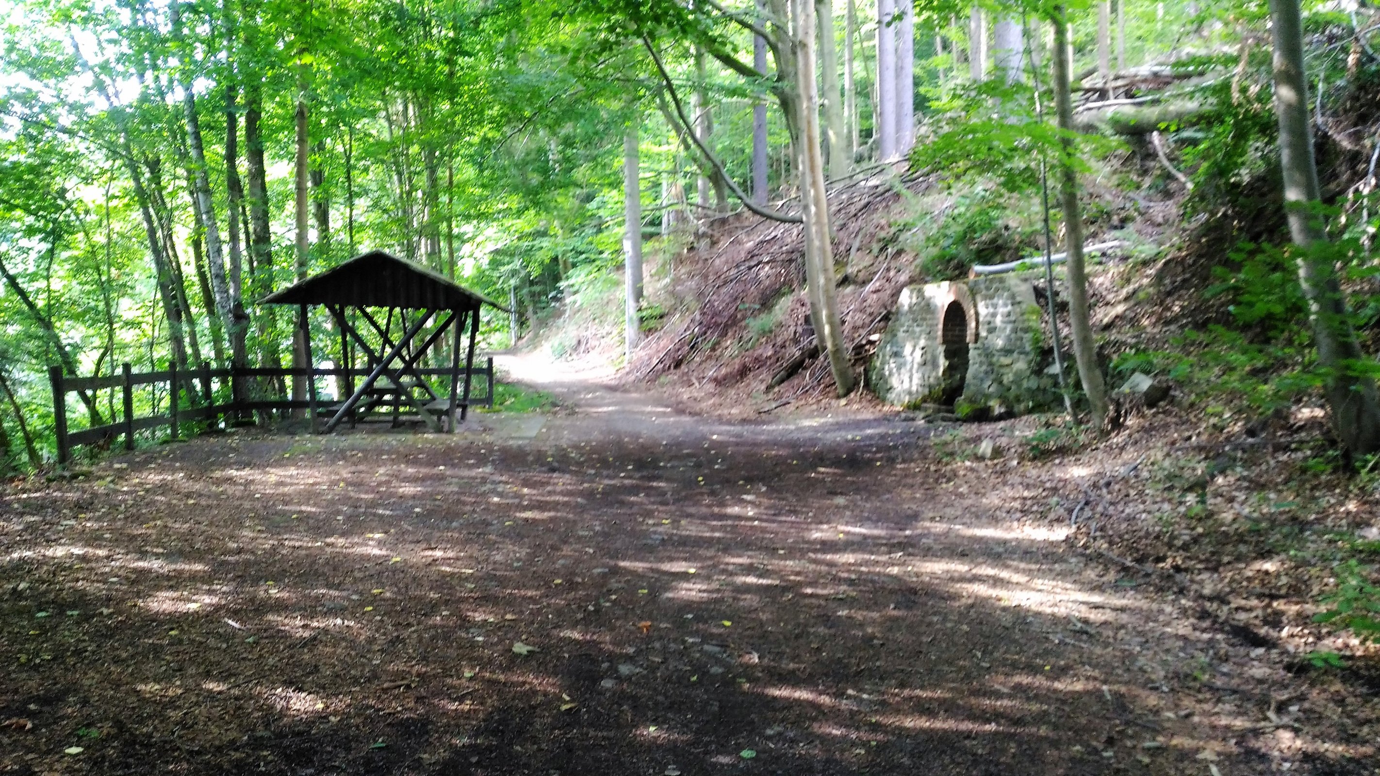 Ve svahu pod zříceninou hradu Lauterstein v Krušných horách je v blízkosti štoly Victoria studánka Mundloch Wismutstolln.