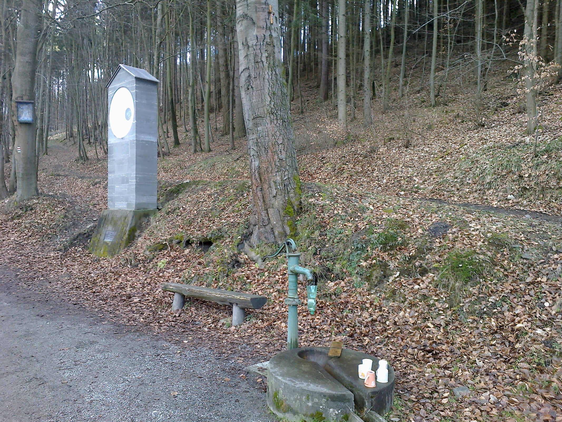 Pumpa je funkční a voda je pitná a přijde vhod. Na místě je i několik hrnků. Tak na zdraví.