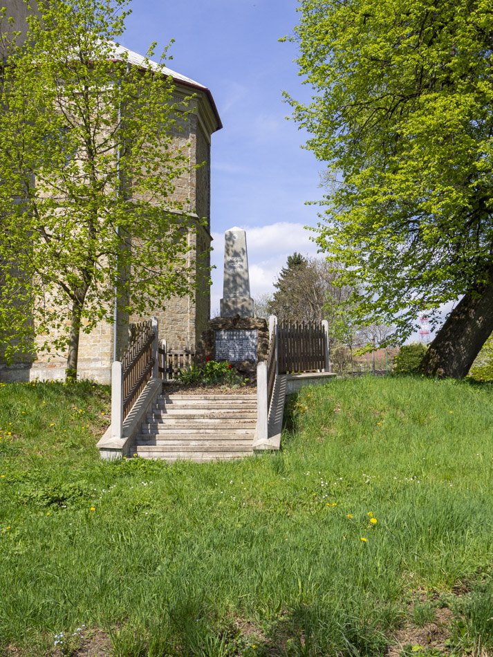 Pomník padlých z let 1914–18 najdeme u závěru kostela sv. Máří Magdaleny. Kostel i pomník jsou umístěné na mírném návrší, proto k pomníku směřuje výrazné schodiště k plůtkem ohrazené plošině s pomníkem. Pomník samotný tvoří podstavec s hrubě opracovaných kamení. Nad podstavcem pokračuje širší základ nízkého hranolu s vrcholovou částí ve formě zužujícího se obelisku.