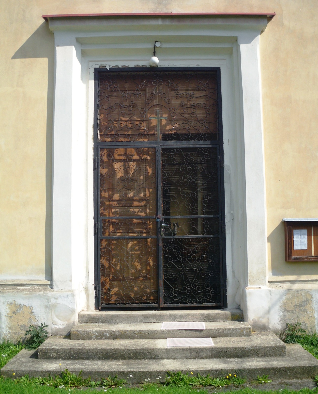 dřevěný kříž vedle kostela