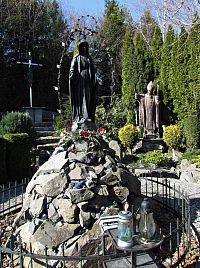 Díky nové zahradní úpravě, bohatému rostlinstvu a ozdobným kamenným skulpturám je příjemným relaxačním místem, jenž tuto podobu získalo roku 2004. Volně přístupný pozemek se nachází v místech farní zahrady, autorem úprav se stal polský kněz I. Jan Lisowski. Prohlédnout si tu můžeme sochu žehnajícího papeže Jana Pavla II., stojícího na kamenné mohyle a bronzovou plastiku Panny Marie. Obě skulptury byly zrobeny v životní velikosti. Dále je tu umístěn kovový kříž a menší litinový krucifix stojí nad schodištěm. Mariánská zahrada slouží nejen k odpočinku poutníků, ale i občasných turistů.