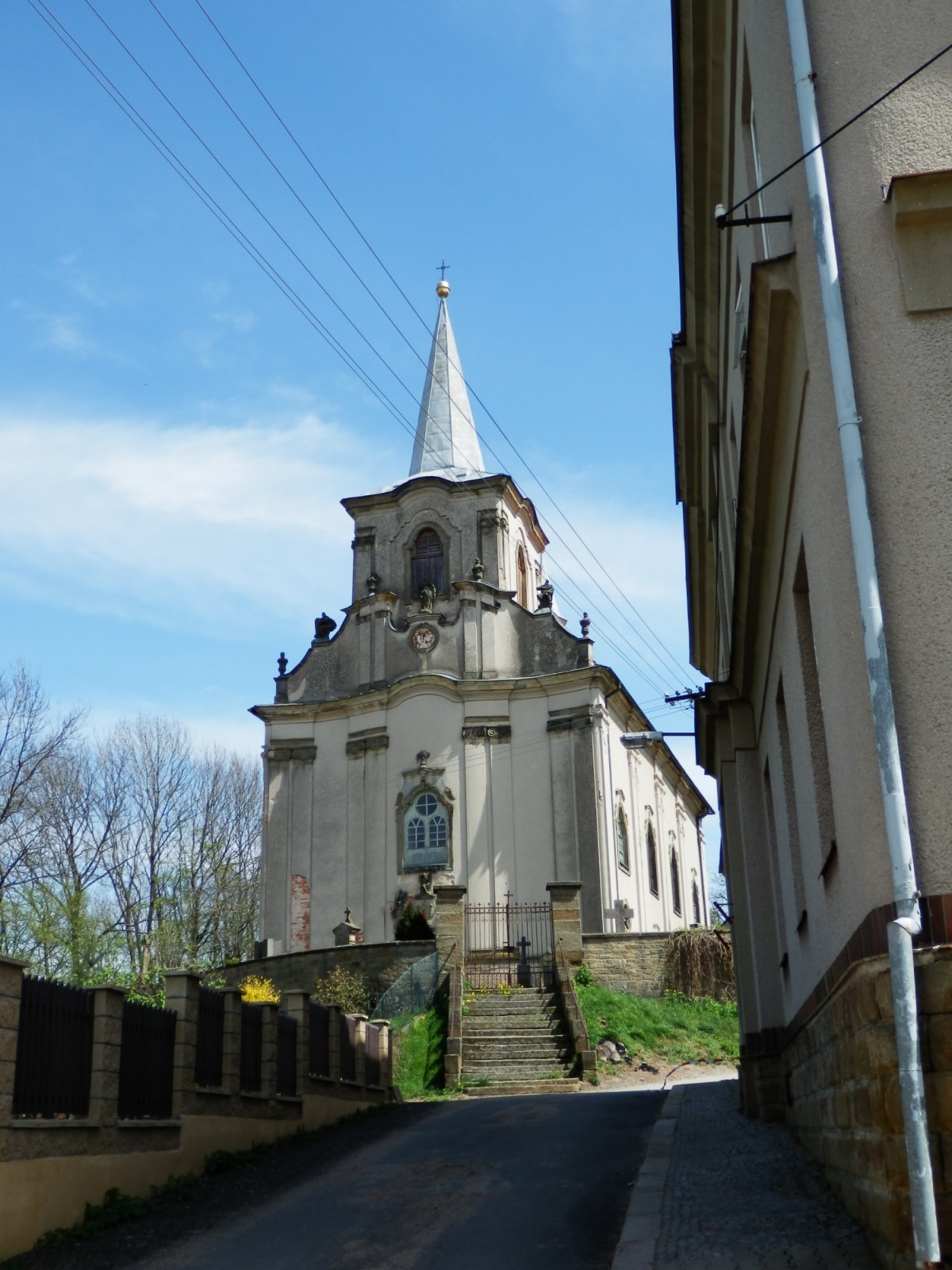 Kostel je jednolodní s presbytářem čtvercového půdorysu, sakristiemi (s oratořemi v patře) po obou jeho stranách a nízkou, ale mohutnou hranolovou západní věží. Byl vystavěn v pozdně barokním venkovském stylu a je kulturní památkou.