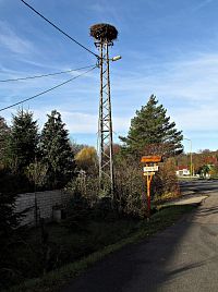 Dle stránek obce zde čápi bílí vyvedli již několik generací potomků. Přitom si svůj příbytek neustále upravovali, doplňovali a vylepšovali, čímž došlo k narušení „stavebního“ materiálu a spodní část se od té horního začala oddělovat. Obec se proto koncem února 2024 postarala o opravu, aby zde v následující sezóně mohli čápi spokojeně a bez problémů znovu hnízdit. Já se tu ocitl v pozdním podzimu následujícího roku, kdy už tito krásní velcí ptáci dávno odletěli do teplých krajin a mohl si zdola od chodníku prohlédnout jen opuštěné hnízdo.
