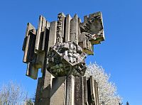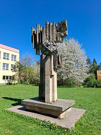 Samotná – téměř pětimetrová - socha z hořického pískovce a slezského mramoru má svou podobou k Šumperku velmi blízko. Mramorové geometrické útvary („krystal odloupnutý ze skály“) na dvou pískovcových pylonech totiž mají symbolizovat zdejší úspěchy průmyslové výroby umělých diamantů v podniku Pramet.