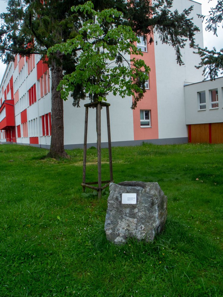 Takže takovou Lípu svobody máme i v Šumperku. Podle tabulky na přilehlém kameni ji vysadili občané města při zmíněné příležitosti. Lípa roste poblíž zdejší učňovky, tedy oficiálně Střední školy řemesel, jak se učiliště nazývá od roku 2021.