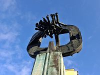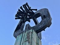 V podstatě se jedná o lehce abstraktní plastiku ze slitiny železa a mědi, která má ve své podobě znázorňovat symbolické spojení světa přírody a techniky a současně i kontrast války a míru (koneckonců se jedná o dílo, které vzniklo v období reálného socialismu a studené války). Samotná plastika je umístěna na vysokém kamenném pylonu čtvercového půdorysu, který je obložen travertinem.