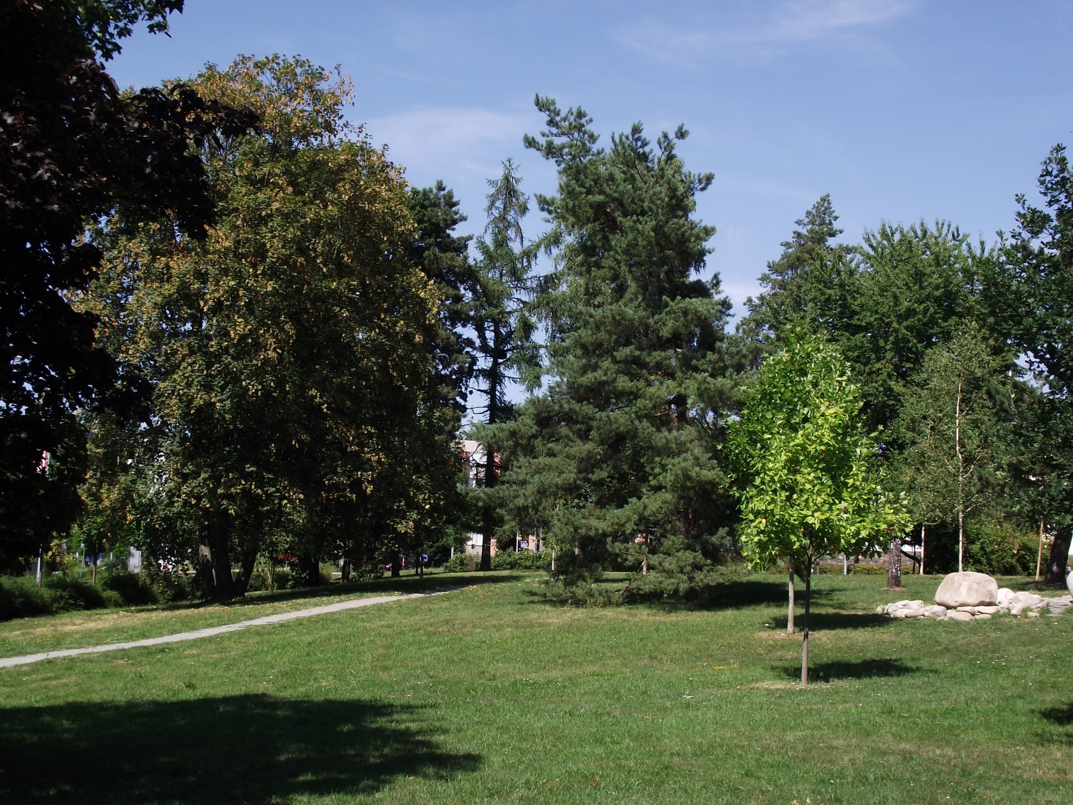 Pro podobu tohoto parku je charakteristická zejména rozsáhlá zatravněná plocha a také relativně velká terénní členitostí. Z dřevin zde byla vždy nejvíce zastoupena bříza bělokorá a Smrk omorika. Břízy se však místním radním něčím neznámým silně znelíbily, a tak byly v uplynulých několika málo - asi dvou - letech takřka vymýceny Krmítka pro ptáky, umístěná na znetvořených kmenech bříz, uříznutých přibližně ve výšce 1,5 metru nad zemí, jsou opravdu jen pro silné žaludky, nemluvě o tom, že i ta krmítka už z pahýlů stromů zmizela. Přesto je třeba přiznat, že rekonstrukce parku byla jinak koncipována moderně a vkusně současně.