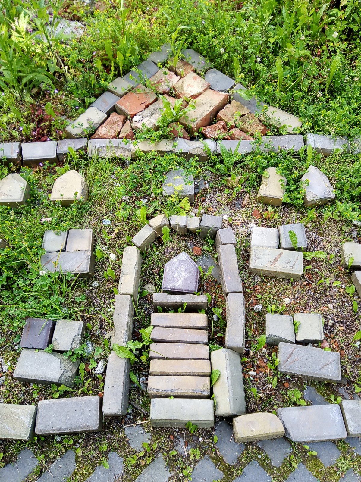 Z dlažby, která zde v minulosti vytvářela komunikace, vznikl na zemi nevelký „model“ hlavní budovy, který doprovází nápis SANATORKA ze stejného materiálu a cihelné srdce.
