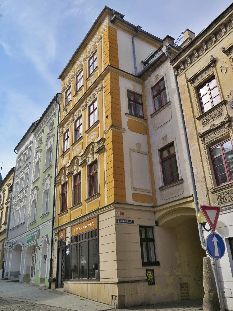 Radniční náměstí Míru je skutečným historickým centrem Šumperka a je proto docela nepřekvapivé, že zde téměř doslova platí „co dům, to chráněná kulturní památka“. Jeden z těch nejzajímavějších i nejnápadnějších najdeme pod číslem 123/16. Jedná se o někdejší činžovní dům s provozovnou a je poměrně neobvyklé, že občas mu bývá přisuzována i „průjezdová“ adresa Černohorská č.p. 148/1.