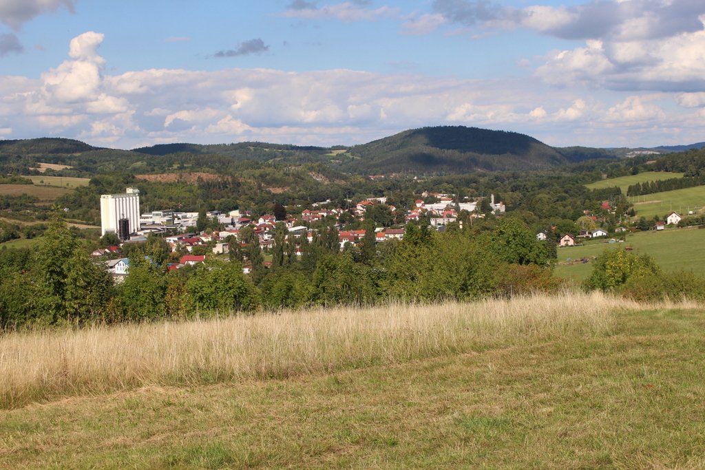 Pohled na město a Budětickou vrchovinu