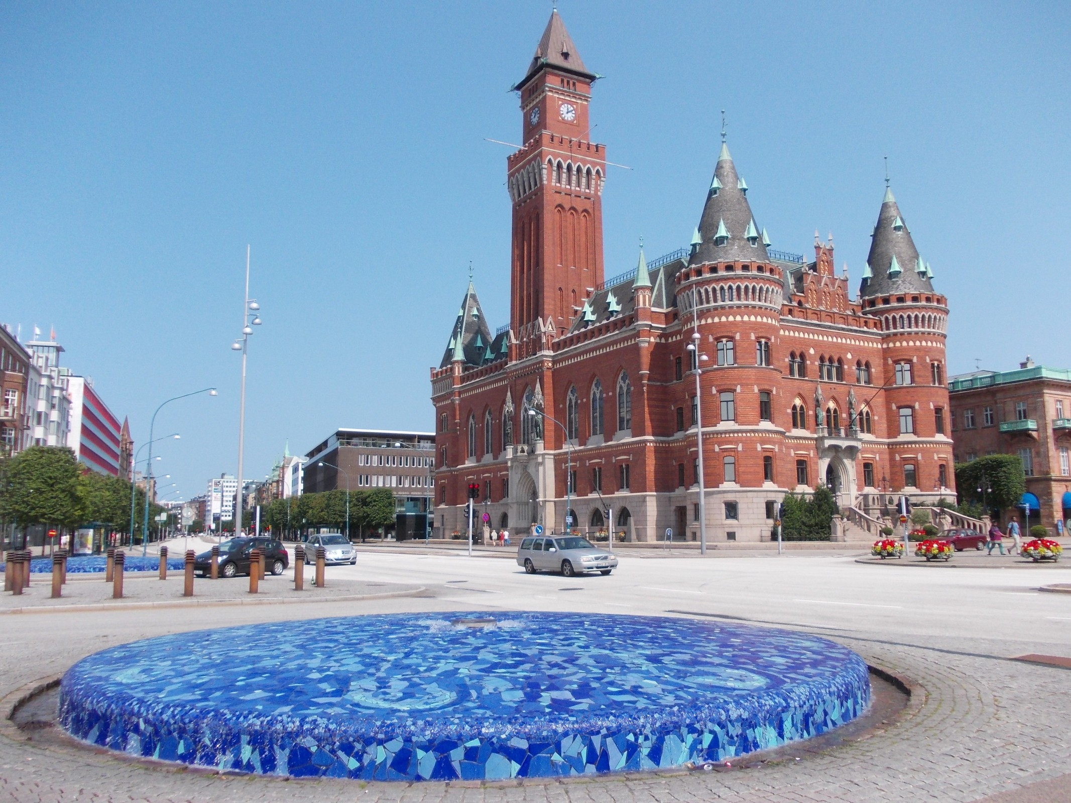 Příspěvky z okolí Švédsko - Helsingborg - radnica a námestie so sochou Mangusa Stenbocka