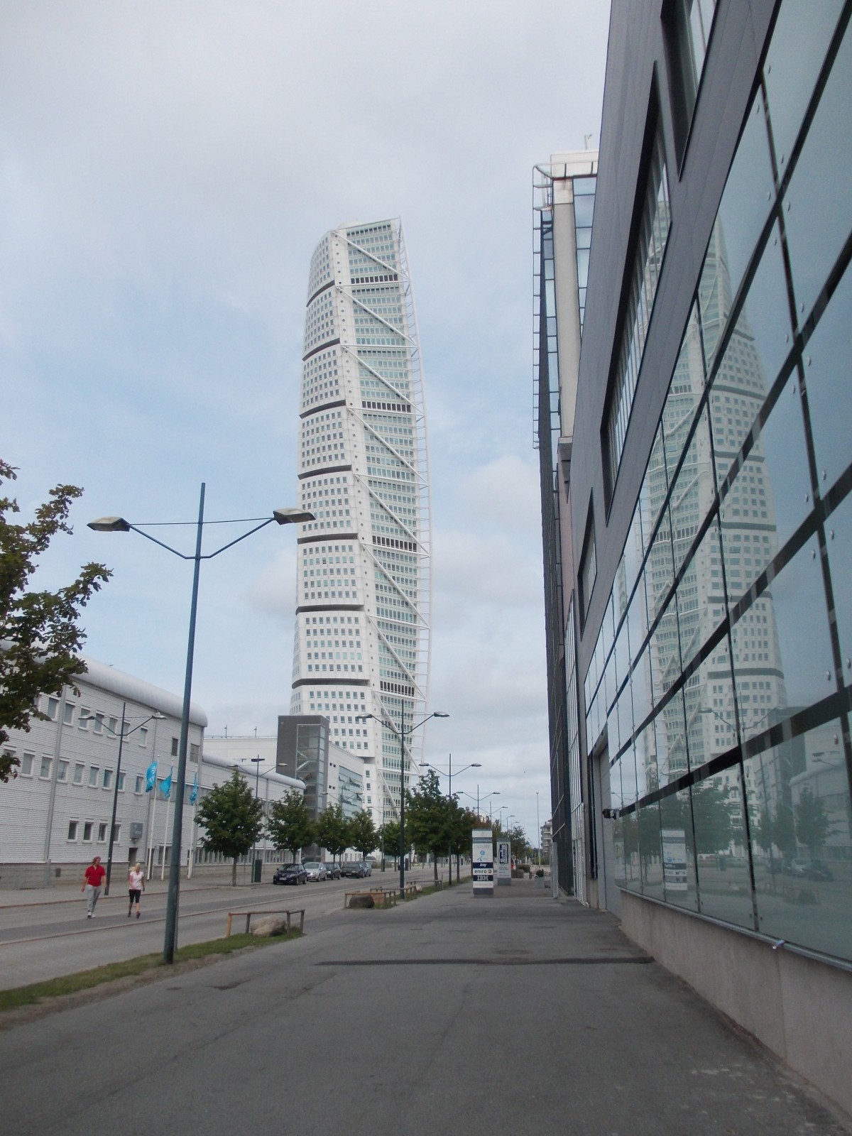 Švédsko - Malmö - mrakodrap Turning Torso a jeho blízka pláž