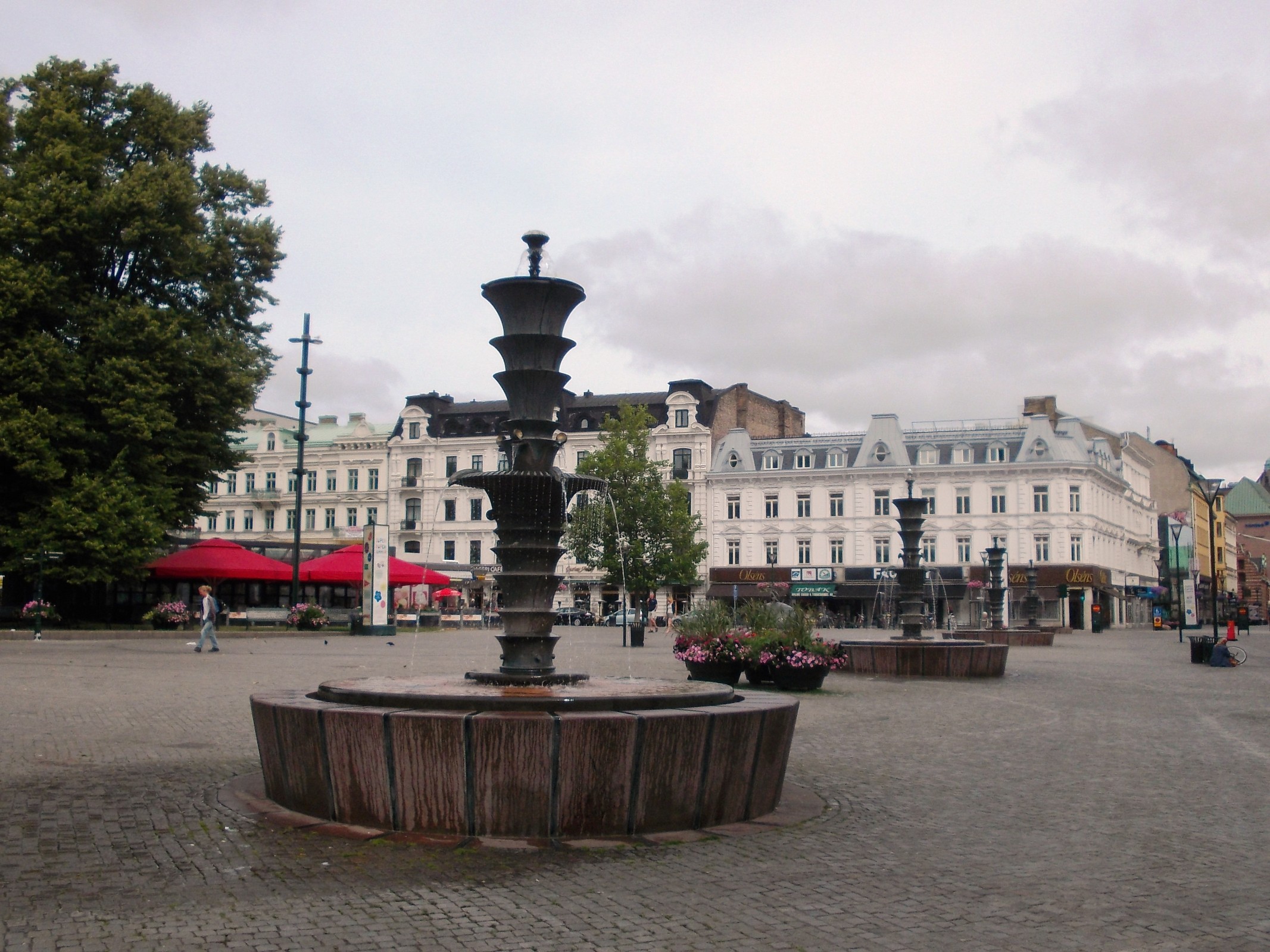 V minulosti na námestie viedla i konská železnica, ktorú v rokoch 1906 - 1907 elektrifikovali. Premávala až do roku 1973, kedy ju úplne zrušili. Medzi jednú z najslávnejších budov okolia námestia patrí i staré divadlo Malmö, z ktorej sa zachovala iba jej fasáda. V blízkosti námestia je aj starý cintorín a jeho okolie tvoria samozrejme i obchody, reštaurácie a Hotely. To je asi tak všetko z tohto fontánového námestia.