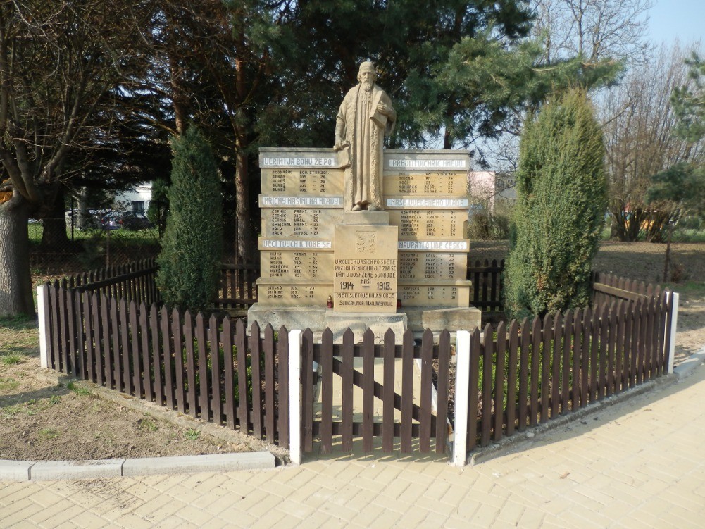Šest let po válce, v roce 1924, nechala Hospodářská beseda zbudovat památník, aby alespoň takto uctila oběti světové války. Památník z hořického pískovce zhotovil sochař pan Vávra z nedaleké Přelouče.