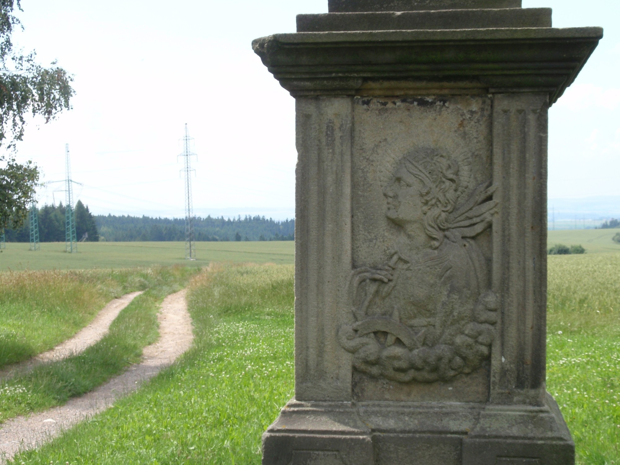 U hřbitova stojí také kamenný podstavec s reliéfní výzdobou s poprsími světců, torzo někdejšího, nyní bohužel uraženého kamenného kříže z roku 1836.