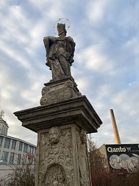 Oblíbený světec, přesněji tedy jeho socha existuje už od roku 1708, tedy z doby, kdy ještě pražský generální vikář ještě nebyl svatý, ale tou dobou už bylo to svatořečení tak nějak „na spadnutí“ (1729).