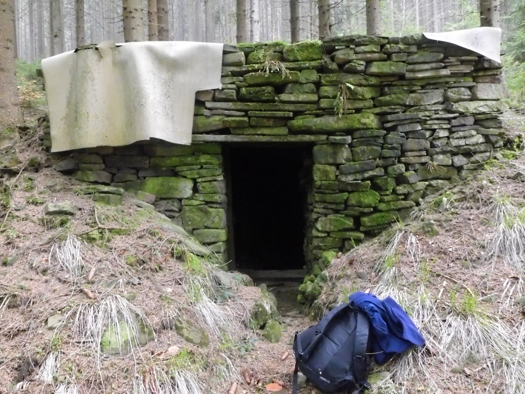 Přibližuji se a mám dojem, jestli to není nějaká dávná štola, ale spíš jen po „vystřízlivění“ mé bujné fantazie si řeknu, že to bude jen nějaký přístřešek z celty, které si dobrodruzi a v určitém pohledu i milovníci mírné samoty, ale přesto i kvalitní společnosti – trempové, zálesáci a jim podobné nátury dělají na mnoha místech hodně vzdálených „cestám davovým“ na nejpopulárnější turistická místa. Nalezení takových oáz klidu mě naplňuje zvláštním pocitem vyrovnanosti.
