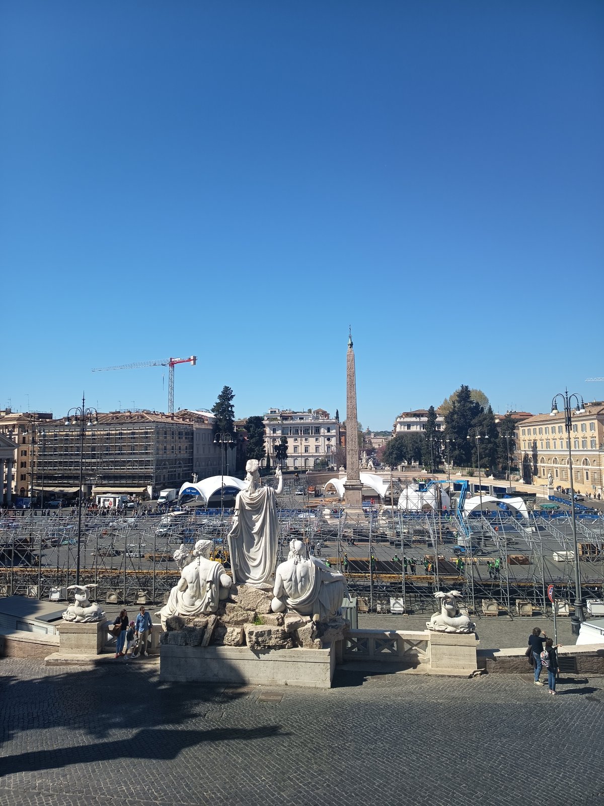 Taliansko - Lazio -Rím - Piazza del Popolo (Námestie ľudu) s fontánami a "dvojičkami" (dvoma kostolmi)