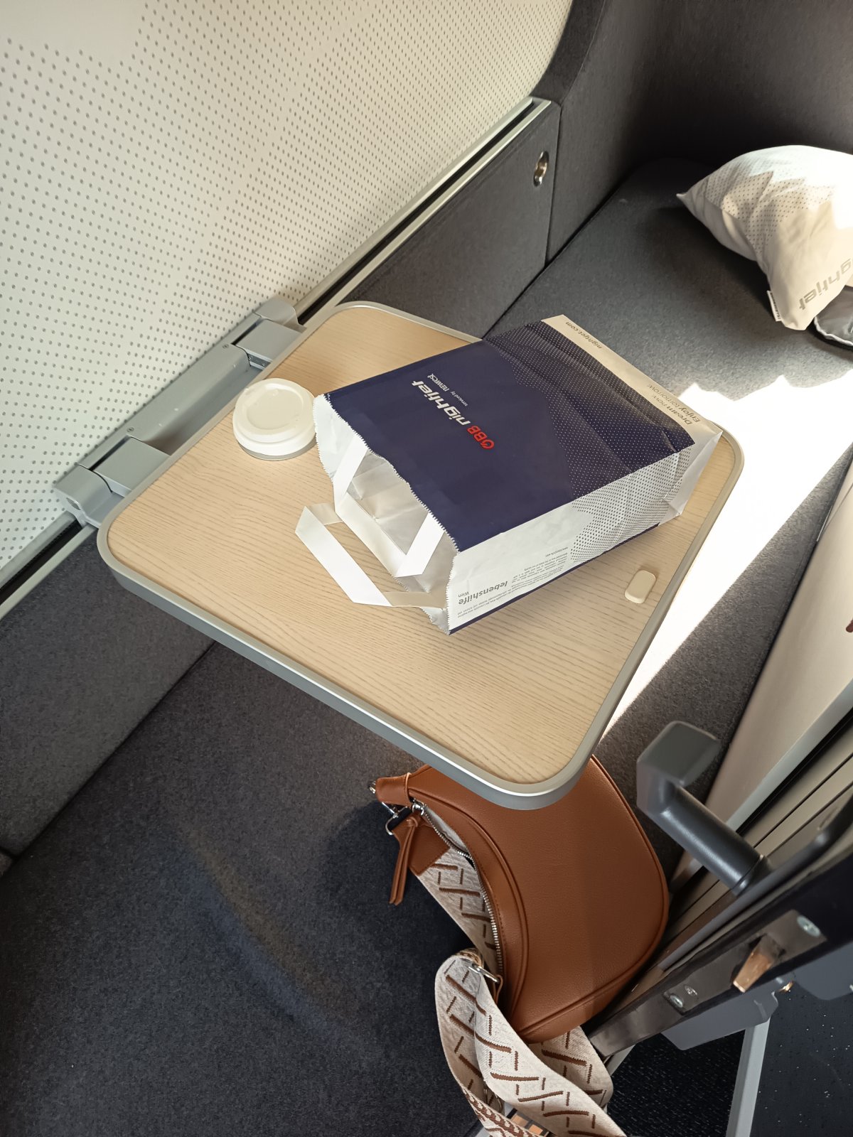 lôžko so stolíkom momentálne slúžiacim ako zrkadlo