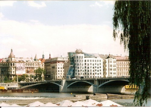 Myslím,že není nikoho,kdo by navštívil Prahu a neviděl Tančící dům na rohu nábřeží Vltavy a Jiráskova náměstí anebo neměl zájem ho vidět,když už Prahu navštívil…..Je to rarita stavitelství- mnohým se možná nelíbí,mnohým se zas líbí,mnozí říkají že se do pražské architektury nehodí,mnozí krčí rameny,ale zkrátka dům byl v r.1992 navržen a v r.1996 byl dokončen. Na jejím návrhu se podíleli dva architekti a sice chorvatský architekt Vlado Milunič a kanadský architekt Frank Gehry.
