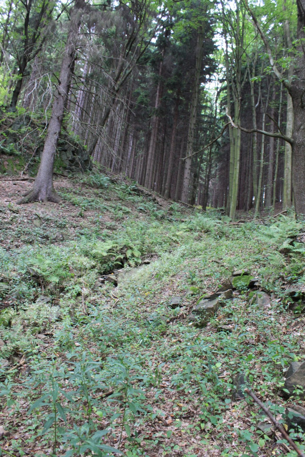 Hrad byl vybudován na protáhlém ostrohu, kte…