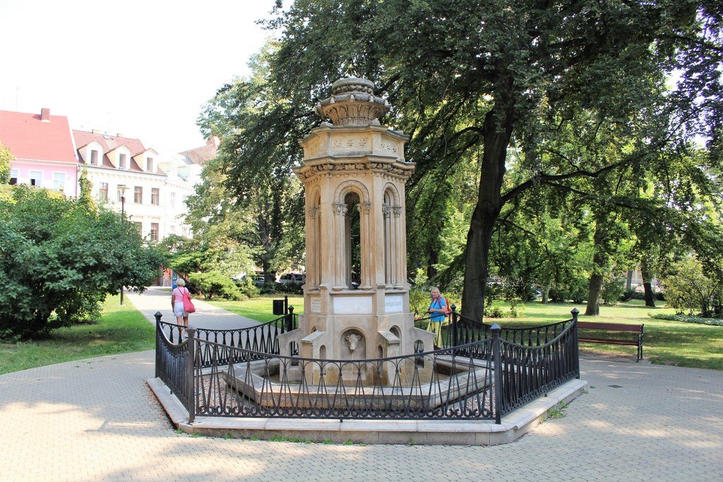 Nachází se na okraji parku, nedaleko ulice U Císařských lázní. Byla postavena v roce 1862 k připomenutí 1100. výročí objevení teplických pramenů. Tuším, že tehdy dostala jméno Jubilejní kašna. Projekt vypracoval A. Siegmund a kamenické díly mají počátek v kamenické dílně v Drážďanech. Ve středu kašny je stavba ve stylu novorománské architektury a s chrliči vody ve tvaru hlav selátek. Vrchol je opatřen širokou kamennou vázou. Kolem kašny je kovový plot a okolí je vydlážděné. V roce 1994 byla provedena rekonstrukce kašny. V následných letech byla parku dána podoba z 19. století.