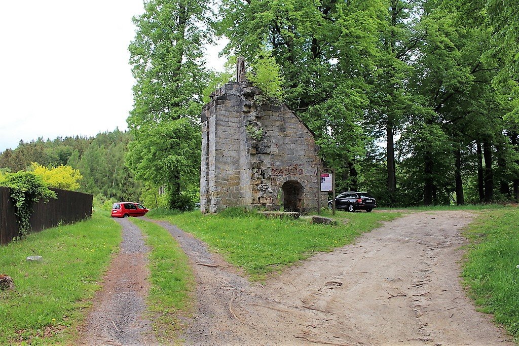 Turistický ukazatel na náměstí ve Chřibské byl první pozvánkou na vycházku k tomuto zajímavému cíli. Na místě byla i zvědavost, jak asi vypadal nejvyšší terč v severních Čechách, který byl 45 metrů vysoký. K tomu lze přidat, jak se asi používal. K úplnosti zbývá dodat, že byl postaven v roce 1792. Z náměstí jdeme po žluté značce. Při cestě, která od města pozvolna stoupá, procházíme kolem hezkého křížku. Za městem v okolí cesty jsou pastviny s odpočívajícím stádem krav. O něco dál je zelená stěna starých stromů, ve které je skryt náš cíl. Zbylo tady toho poměrně dost, ale ke 45 metrům má torzo hodně daleko. Panel s informacemi trochu otevírá tajemnost terče a po dalším bádání máme jasno. Obsluha terče musela být docela náročná práce. Jsme spokojeni a stejnou cestou se vracíme do města. Cesta tam i zpět se vejde do dvou kilometrů. Více o terči dopoví foto informační tabule.