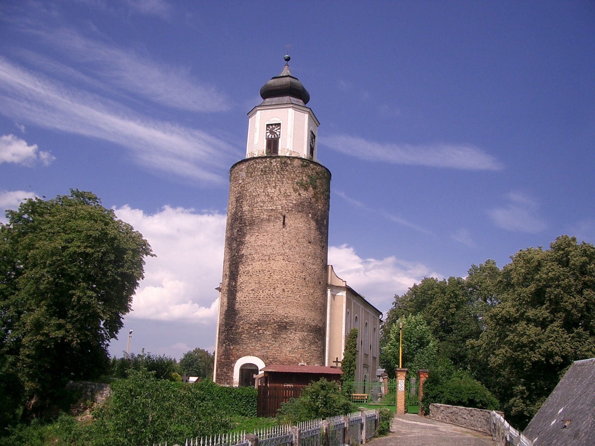 Kostel byl z hradu přestavěn až r.1805 – 1810 . Na východním boku kostela jsou umístěny náhrobní desky /18 ks. - nejstarší až z r.1582/. Jako stavaře mně překvapila mohutnost a kvalita staré věže / hrad z 11.stol/ , opravdu kompaktní hmota věže jež nebyla ani narušena vybouráním velkého vchodu do kostela přes věž a navíc nástavba nové kostelní věže včetně zvonů .