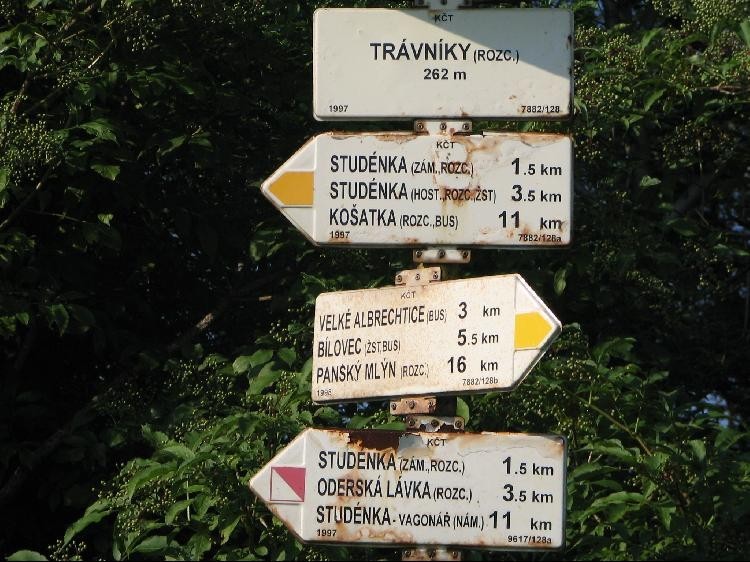 Trávníky - rozcestí je orientační místo na žluté turistické trase a nachází se severním směrem od města Studénky a ve východní části oblasti nazývané Butovická pole. Kromě turistické trasy prochází tímto Rozcestím červeně značený vycházkový okruh vedoucí kolem Studénky a je tu křižovatka značených cyklostezek. Rozcestník je umístěn v místech kdy turistická trasa opouští silnici a dále pokračuje po polní cestě. Po žluté značce dojdeme k tomuto rozcestí od železniční stanice ve Studénce a kolem zámečku a značka dále pokračuje do města Bílovce.