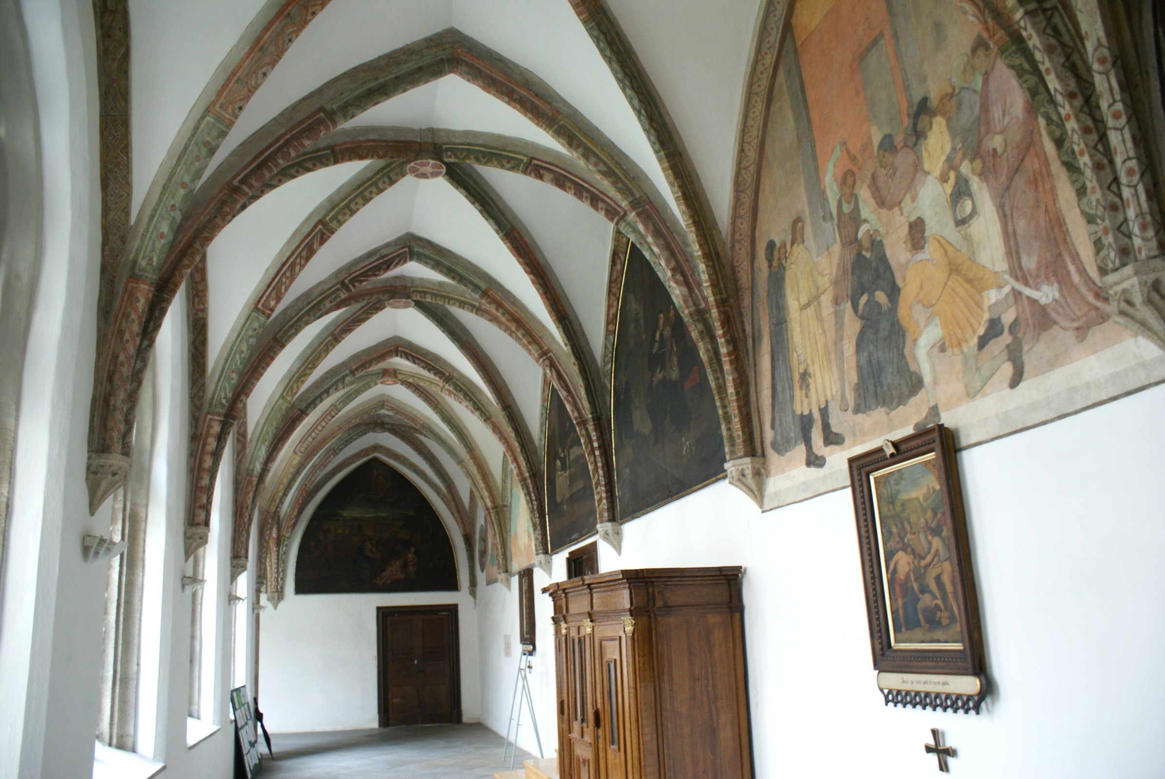 Příznivec gotiky je zde ovšem ve svých choutchách plně uspokojen i v současné době. K severní straně kostela totiž přiléhá jednopatrová budova čtvercového konventu s Křížovou chodbou z konce 14. století. Ta se dochovala téměřv původní podobě, včetně všech stěn, prolomených do rajského dvora širokými hrotitými arkádami. Najdete zde také překrásné bohaté kružby (trojího druhu) gotických oken, polychromované klenební žebroví a nástěnné malby, pocházející z období od konce 14. až do počátku 16. století. Nechybí ani původní kaple sv. Jana Evangelisty nebo rajská zahrada s původní studnou. Nádvoří kláštera naopak tvoří komplex barokních budov z 18. století s kamennou kašnou o téměř sto let starší. Vyjímkou je budova s rožmberskou gotickou kaplí sv. Vincence z roku 1380, která je dnes součástí schodiště bytového domu.