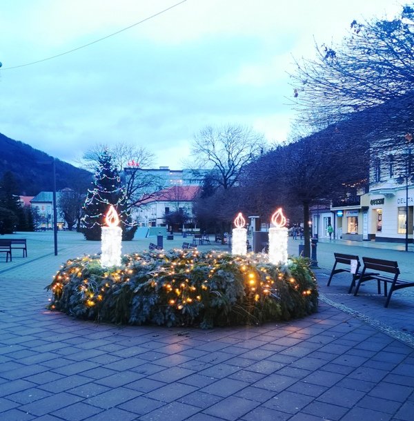 Išlo o malú prechádzku večernými Trenčianskymi Teplicami, ktorá sa niesla v komornom duchu. Cestou naspäť sme ešte nahliadli do vianočne vyzdobeného kostola sv. Štefana kráľa.