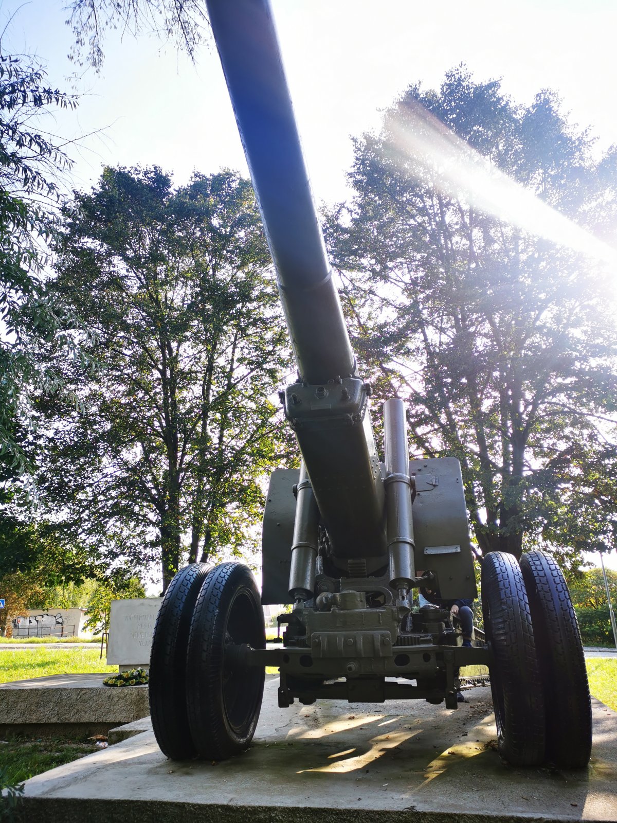 Jedným z nich je aj ,,pamätník oslobodenia mesta Trenčín v roku 1945". Pamätníkom je vlastne historická vojenská technika nazývana tiež ,,jaselské delo,,. S vojenskou technikou nemám ,,až,, také skúsenosti, ale dozvedela som sa, že ide o kanónovú húfnicu vz. 37 o ráži 152 mm. Ide o soviestku húfnicu, ktorú v roku 1937 zostrojili sovietski konštruktéri. Tieto hútnice boli kostrou ťažkých poľných delostrelecký batérii Červenej armády. Boli určite dobrej kvality, lebo ,,ukoristené,, použila vo svojej výzbroji aj nemecká armáda. Dĺžka tejto zbrane bola 4,9 metra, prepravná hmotnosť 7,9 kg, dostrel húfnice bol 17 625 metrov a strela vážila 43,5 kg.