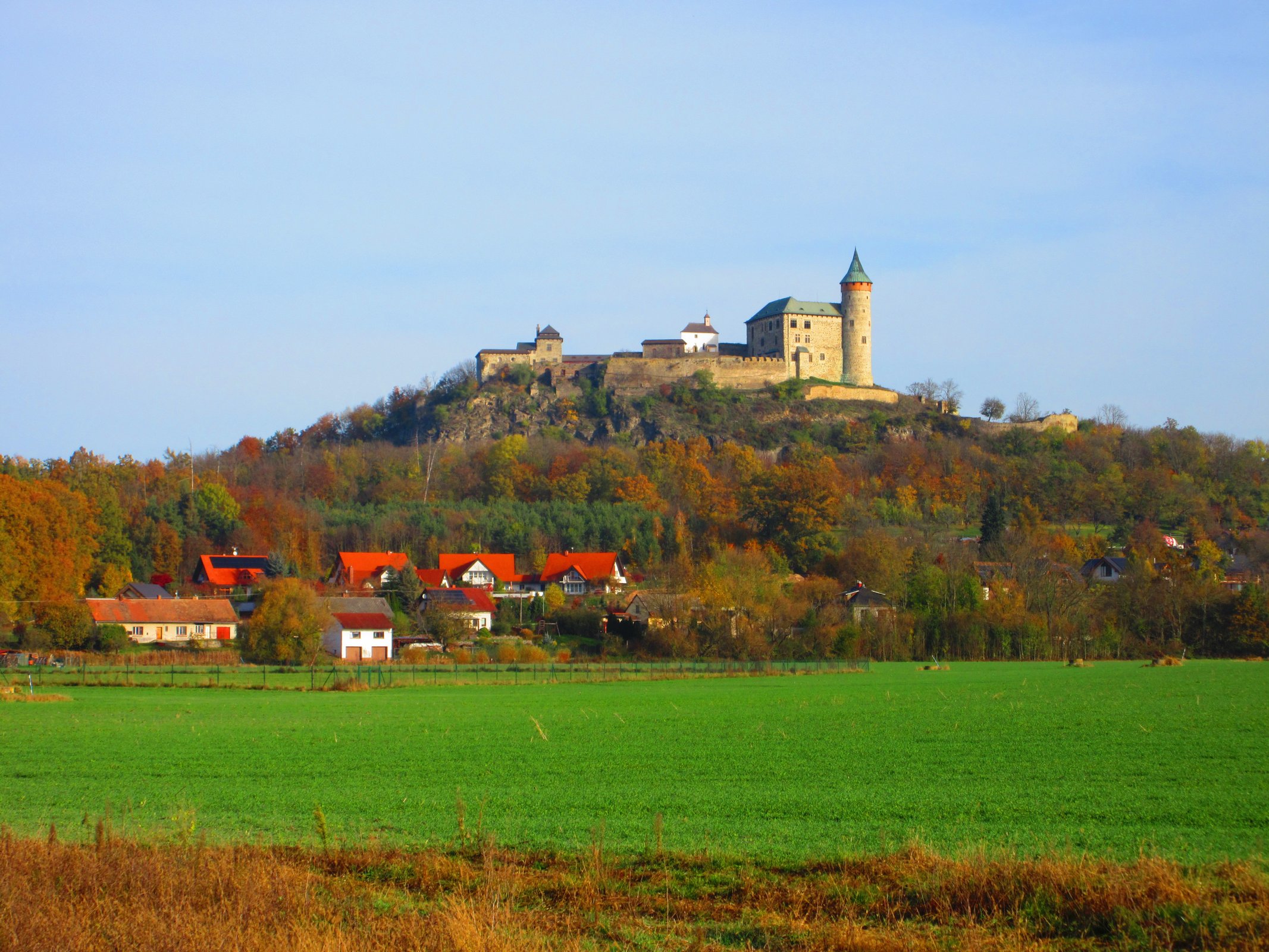 Ráby, v které poslední vesnici v kapli sv. Jana Nep. obětována byla mše sv., na to pak bylo posnídáno. Konečně došlo se k hradu, mladí bojovníci jej žertem šťastně dobyli a nyní nastala volná zábava. Mládež prohlídnuvší sobě prostory hradu, utábořila se na nádvoří hradeckém, nakoupila si třešní, cukrového, oddala se zpěvu a nenuceným hrám; mimo toho si proskočila při zvuku veselé hudby. V někdejších komnatách rytířských popíjeli a hovořili starší lidé. Večer toliko učinil konec, neradi se loučili mladí i staří s malebnými zříceninami Hory Kunětické. Mládež seřadila se zase do řad, dala s Bohem starému hradu, a za zvuků hudby pozdě na noc došla do Pardubic, aby s rodičemi nebo přátely svými v obydlích po tak krásné zábavě spánkem se občerstvila. Však to bylo jen jednou do roka, aneb několikráte v letě, kdy tiché stěny starého hradu byly oživeny. Nyní stává se to v letě častěji při výletě studujících z Pardubic, nebo spolků rozdílných z okolních měst. Mimo to každou neděli bývá v hradním sále hudební zábava s tancem spojená. Jindy zvláště v zimě panuje v prostorách hradu toho ticho tajemné, a zříceniny jeho jsou obrazem nejen pomijejičnosti života lidského, ale i úpadku naši vlasti české, též rodu Pernštýnského, který ač hrad ten s velkým nákladem upravil, předce dříve z povrchu země zmizel, nežli památka od něj zbudovaná!-“
