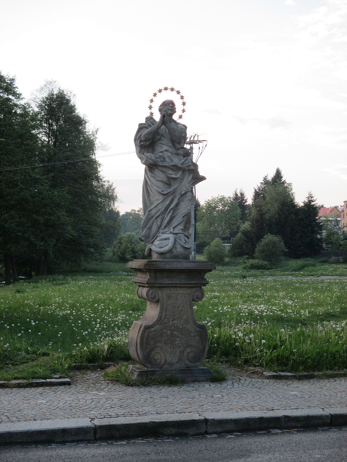 V Třešti v ulici Na hrázi protéká pod můstkem, u kterého se nachází barokní sochy. Sochu sv. Jana Nepomuckého i sochu Immaculaty (Neposkvrněného Početí Panny Marie) vytvořil v první polovině 18. století stonařovský sochař Franc Klaus pro Leopolda Karla z Herbersteina, pána na Třešti, jak nám to sděluje tabulka na mostku. V těsné blízkosti soch se nachází i barokní kamenný kříž. Na druhém břehu se nachází busta renesančního matematika, astronoma, lékaře a vychovatele synů Friricha Falckého Šimona Partlice ze Špicberka. O pár mtrů dál stojí památník obětem 1. světové války.